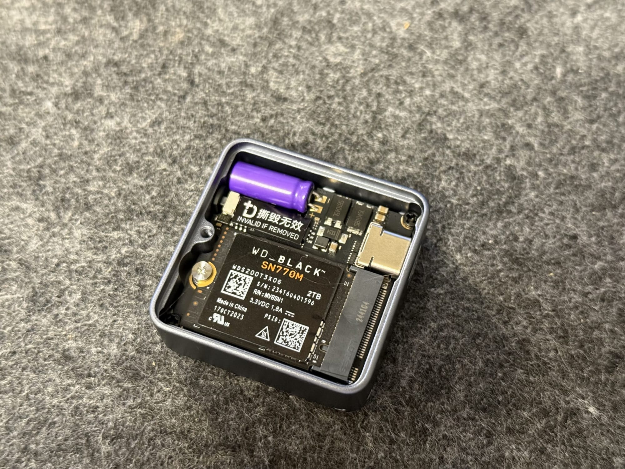 Der Inhalt der Box samt SSD... ... noch ohne Deckel bzw. Kühlkörper ... ...und fertig montiert