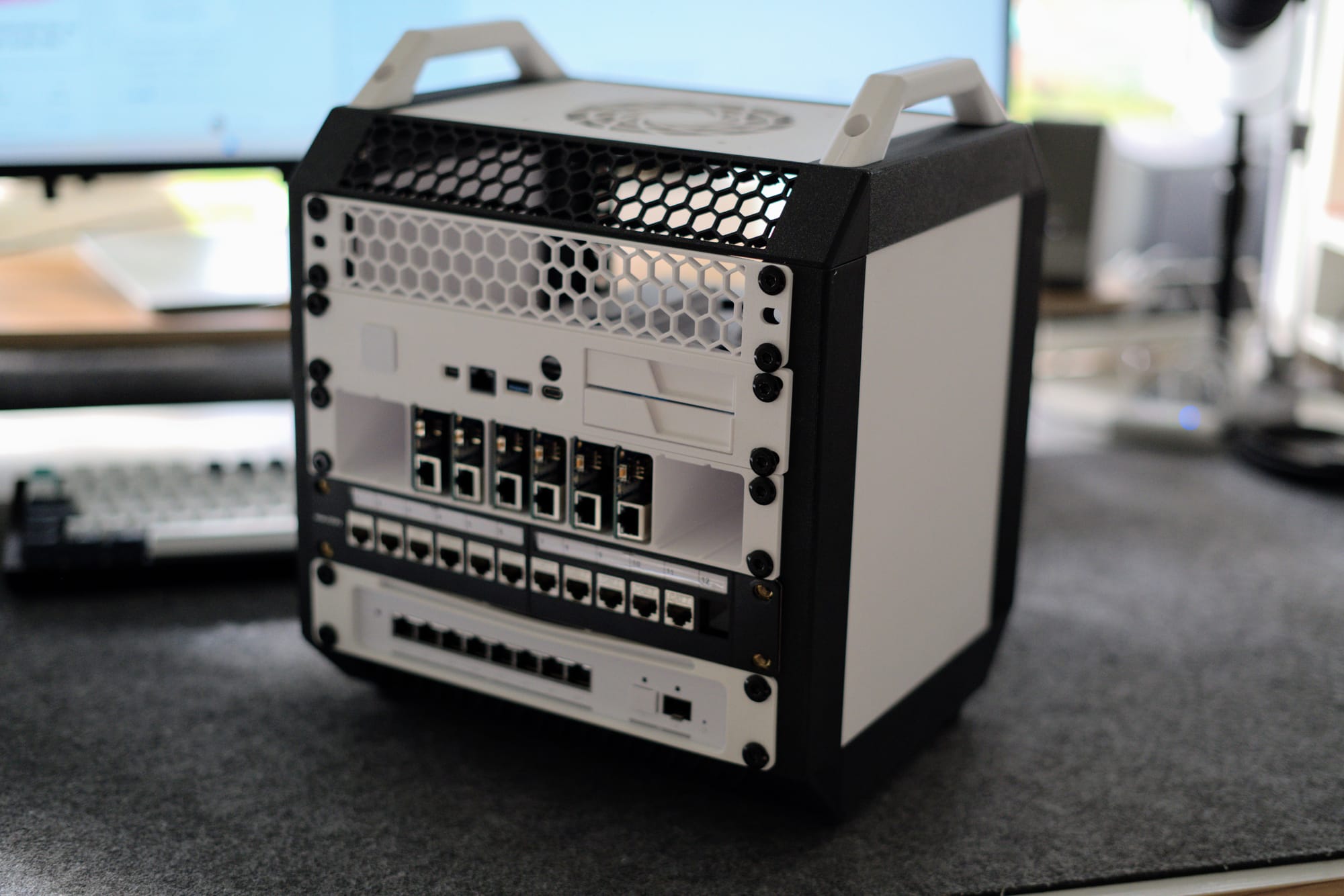 Er hängt über eine 10-Gigabit-Glasfaser direkt am Router – und ist damit die Hauptschlagader zur Außenwelt.